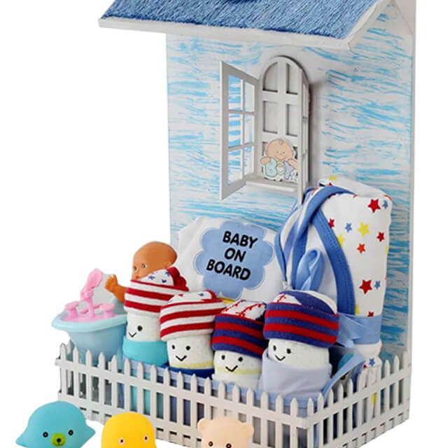 Newborn Baby Boy Picket Fence House Hamper - FA28686