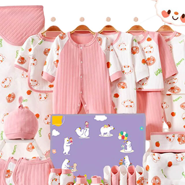 This meticulously designed stunning hamper to be gifted to a newborn or to a baby from 0-6 months.The hamper comprises of 24 pcs in a nicely packaged cardboard box which includes