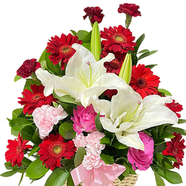 Keranjang yang indah ini terdiri dari 9 bunga Gerbera, 4 bunga Lily, 2 Carnation Pink, 3 Carnation Merah, dan 2 Mawar Pink, menciptakan susunan yang memukau dan penuh warna. Kombinasi bunga yang kaya ini sangat cocok untuk dekorasi meja, memberikan sentuhan elegan dalam setiap acara. Selain itu, keranjang ini juga merupakan pilihan sempurna untuk mengucapkan lekas sembuh kepada orang terkasih yang sedang sakit, serta merayakan momen spesial seperti anniversary atau kebutuhan romantis. Dengan keindahan yang menawan dan aroma yang menyegarkan, keranjang ini pasti akan membawa kebahagiaan dan kehangatan kepada setiap penerimanya.