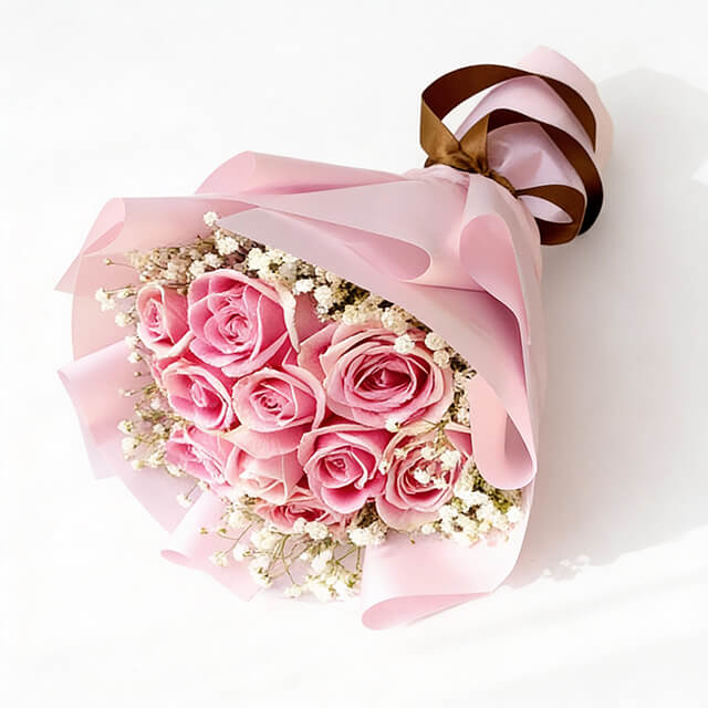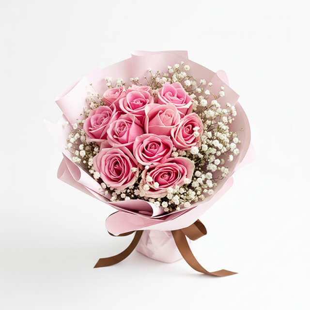 Pink Roses (10 Stalks), Baby Breath
