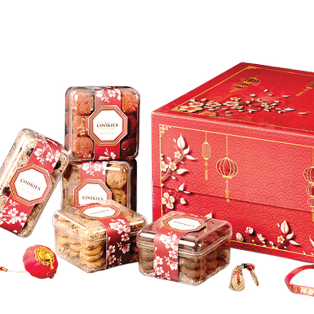 Red Velvet Cube Cookies: Kue kering berbentuk kubus berwarna merah kecokelatan yang unik dan menarik di tumpukan paling atas.