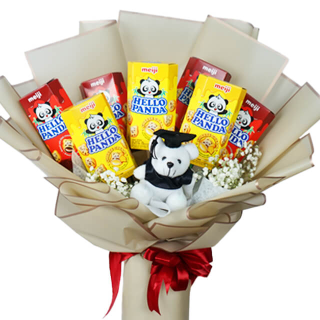 Rayakan kelulusan dengan hadiah manis yang penuh kehangatan dan keceriaan dengan snack bouquet. Rangkaian ini menghadirkan 7 bungkus Hello Panda, dipadukan dengan teddy bear lucu yang dihiasi Baby’s Breath untuk sentuhan elegan. Cocok untuk siapa saja yang merayakan pencapaian besar, buket ini memberikan kejutan manis dan kenang-kenangan yang tak terlupakan. Dengan kombinasi camilan lezat dan desain yang penuh perhatian, buket ini adalah hadiah sempurna untuk menghadirkan senyuman dan membuat momen spesial semakin berkesan.