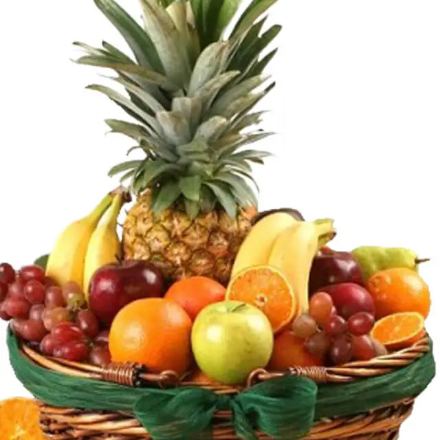 Size Standard, This fruit basket features a fresh array of delicious domestic and tropical fruits, such as grapes, apples, oranges, pineapple, mango, and kiwi.Exact basket and fruit selection may vary by season and delivery location