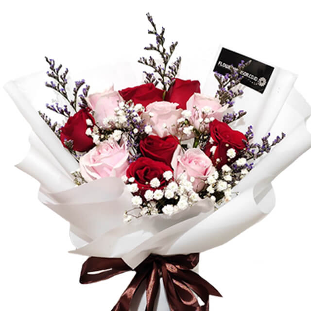 Capture the magic of the special moment with a mixed roses bouquet of pink & red roses with fillers. This beautiful blend of vibrant red roses and soft pink roses symbolizes both love and affection, making it the perfect gift for anniversary birthdays, or any romantic occasion.