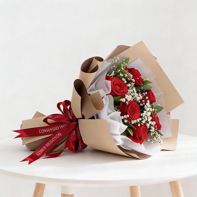 Red Roses (6 Stalks), Baby Breath, Ruscus