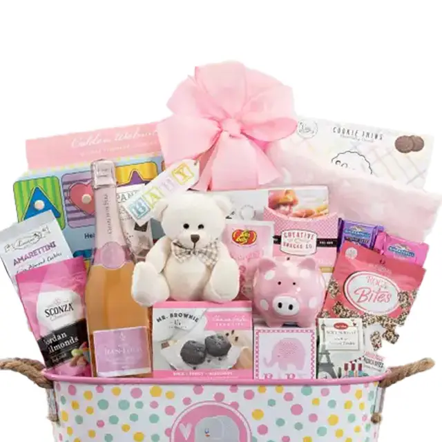 Baby Girl Sparkling Wine Basket - FA24854